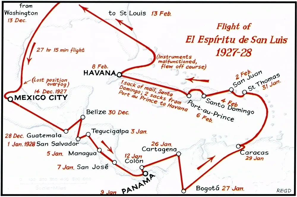 El 7 de enero de 1928, el piloto estadounidense Charles Lindbergh llegó a Costa Rica volando el Espíritu de san Luis, como parte de una gira promocional de la compañía Pan American, que incluía México, los otros países de América Central, Colombia, Venezuela, y algunas islas del Caribe.