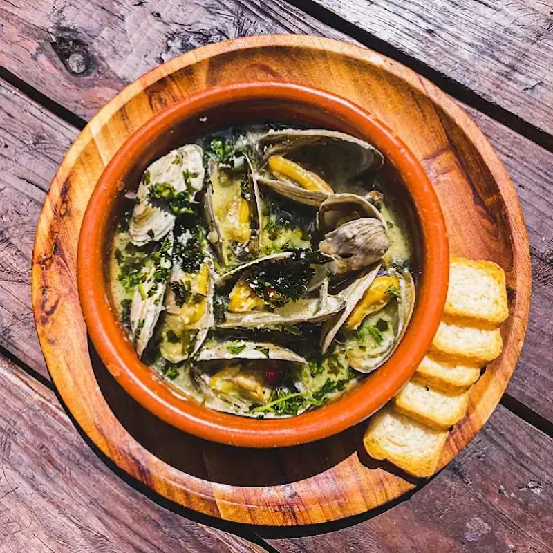 El relleno: El centro se ahueca para recibir mariscos, pollo o carne frita, generalmente bañados en un caldo o salsa criolla que el plátano absorbe, creando un bocado suculento.