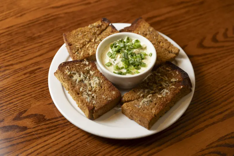 El restaurante ofrece una carta amplia de comida estilo americano-mediano: hamburguesas de búfalo, sándwiches de cerdo, gumbo, pizzas, sopas de gorgonzola, y otras especialidades locales. Por ejemplo, la sopa de gorgonzola ale y la gumbo aparecen como platos destacados en la guía de restaurantes.