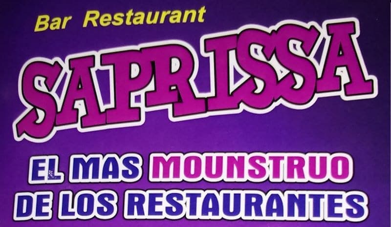 El más evidente es un bar casi a la sombra de la Cueva del Mounstro y que simplemente se llama bar Saprissa. O sea, más de un envenenado ni se atreverá a poner un pie allí. Y es que para más señas, está una cuadra al sur del estadio. Ir un día de partido debe ser de locos aunque el resto del tiempo más bien es muy tranquilo, como el día que llegó la Patrulla, pero como ahora todos los días hay fútbol, ese día jugaba el sufrido equipo morado en alguna lejana localidad así que el partido estaba omnipresente en los televisores. A pesar de ello, había sólo unos pocos clientes más o menos aislados, aunque con cara de asiduos.