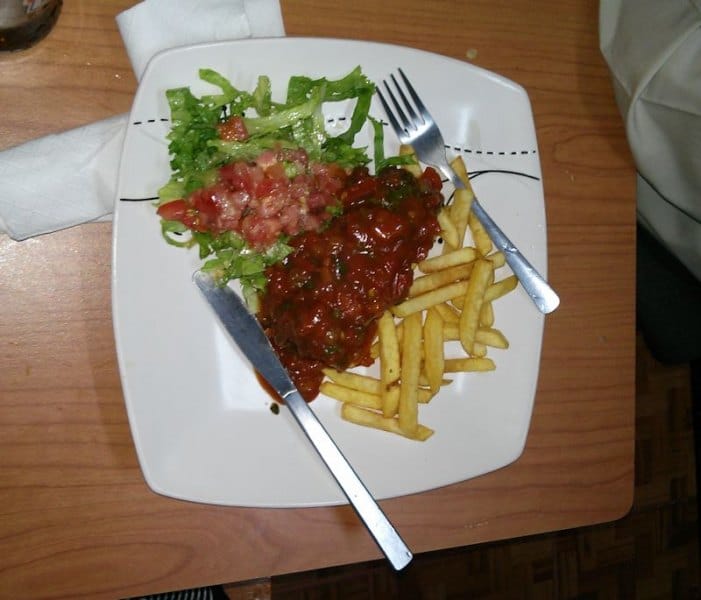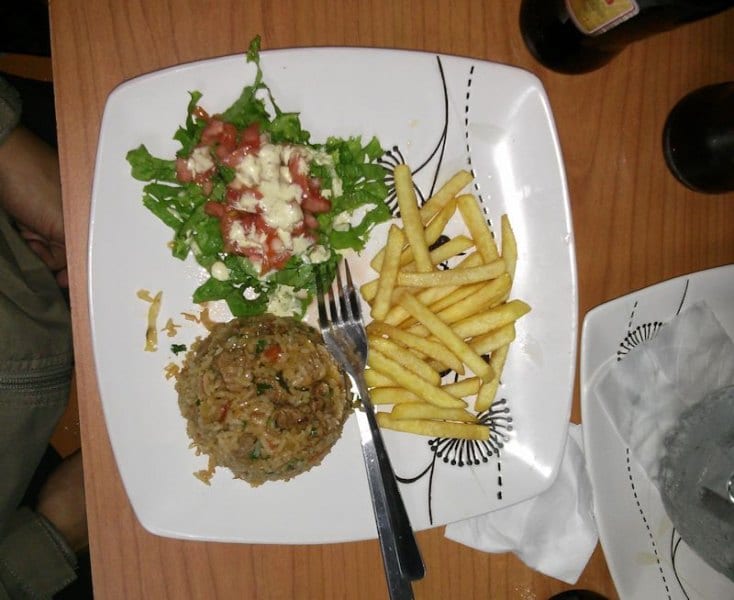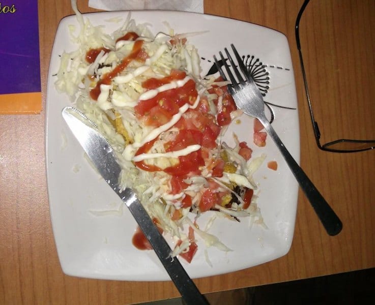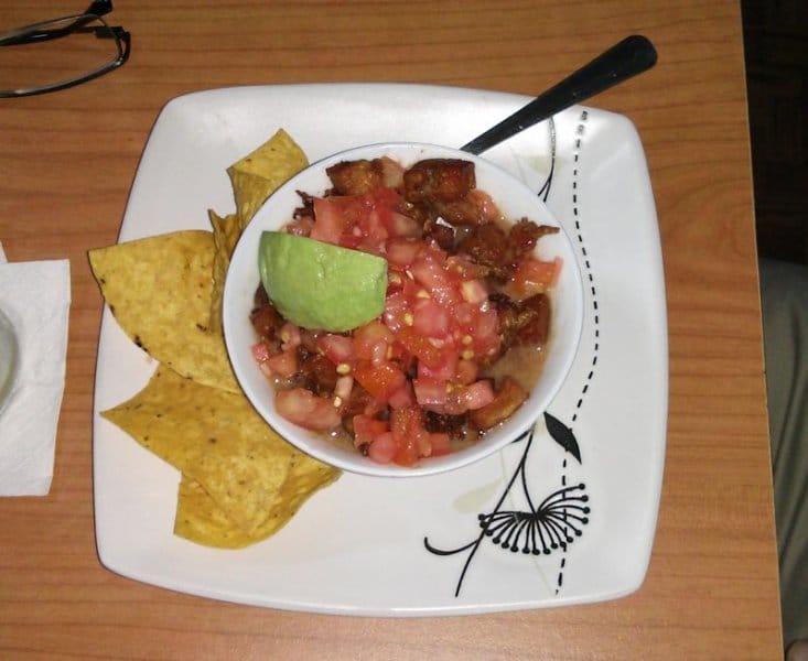 Una vez que cómodamente se hubiesen arremangado los patrulleros, sonó en el televisor el primer gol del partido, a favor del equipo local del bar. Buen augurio para comenzar la dura faena, aunque debe hacerse una advertencia, pues ponen un menú con fotos que de fijo fueron sacadas de Internet, pues nada que ver con la realidad de lo que sirven. La boca de costilla la traen con patacones, estaba muy huesuda, nada del otro mundo. El chorizo sí estaba muy bien, sirven dos generosas porciones, bien tostadito, viene con un par de tortillas acompañado con tomate y yuca frita. Como en cualquier bar tico, no podía faltar el chifrijo, no fue nada del otro mundo pero con una calidad decente, lo sirven sin arroz y por eso en su lugar trae bastante chanchito, los frijoles estaban buenos, recién hechos, buen aguacate, sin mayor problema complacieron el gusto del patrullero que lo pidió, al cual no le gusta la cebolla, en resumen, bueno pero sin estar en las grandes ligas de los chifrijos. Mientras tanto cantaban el segundo gol morado, por lo que el ambiente se animó, aunque no mucho. Los tacos de pollo salieron muy bien parados, traen un par de tacos de buen tamaño, con bastante carne aunque muy grasosos. La sopa de mariscos siguió con la impresión general del lugar, es decir, con buen sabor, con buena variedad de frutos de mar, pero hay mejores en otros lares. En el menú hay un plato muy original, el arroz con lomo, digamos que la ensalada que lo acompaña sale sobrando, en general el sabor estaba muy bueno aunque podrían mejorar un poquito más el condimento de la carne. El pescado al ajillo, por su tamaño más parece un plato normal que una boca, además estaba delicioso. Como de costumbre, en una Patrulla que se precie hay que probar los dados de queso y éstos fueron la estrella de la noche, realmente sobresalientes, el queso en su punto, doraditos por fuera y suaves por dentro sin exceso de sal, justifican un regreso al lugar. Hay un “gordon bleu” que nada que ver con la receta original, apenas le ponen un queso blanco pero fuera de eso es una carne con buen sabor y buena salsa. Para cerrar, un bistec a la plancha que por dicha fue lo último que se pidió, porque mientras lo cocinaban un delicioso olor inundó todo el pequeño local, alguien muy hambriento no lo hubiera soportado. Y hasta alcanzó para que el Saprissa metiera un tercer gol, aunque ya para ese momento, la mayoría de los asiduos, en promedio entraditos en años, ya se habían ido a meterse a las cobijas.