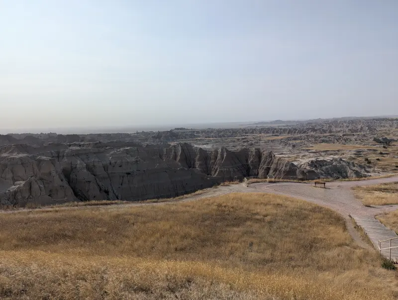 En mi viaje a los estados de Colorado y Dakota del Sur, visitamos el Parque Nacional Badlands, y todavía no estoy seguro de haber entendido del todo lo que vi. Hay lugares que uno puede describir con relativa facilidad —una ciudad, una playa, un glaciar que se derrite—, pero las Badlands de Dakota del Sur pertenecen a esa categoría escurridiza de escenarios que parecen más bien una metáfora. O una advertencia. O un fósil en forma de paisaje. Así de increíbles son.