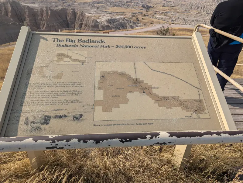 Nos hospedamos en Rapid City, y al día siguiente de llegar salimos temprano hacia el parque, que esta a unos 130 km de distancia. El camino es engañosamente normal, con praderas interminables, pueblos que parecen maquetas y señales que anuncian bisontes que no siempre se muestran. Y de pronto, sin mucha ceremonia, el suelo se abre. La tierra empieza a plegarse, a hundirse, a levantarse en crestas y cuchillos de arcilla. Y allí está un abismo con memoria de millones de años, como si la superficie hubiese sido rasgada por una mano gigantesca. ¡Que paisaje más increíble!