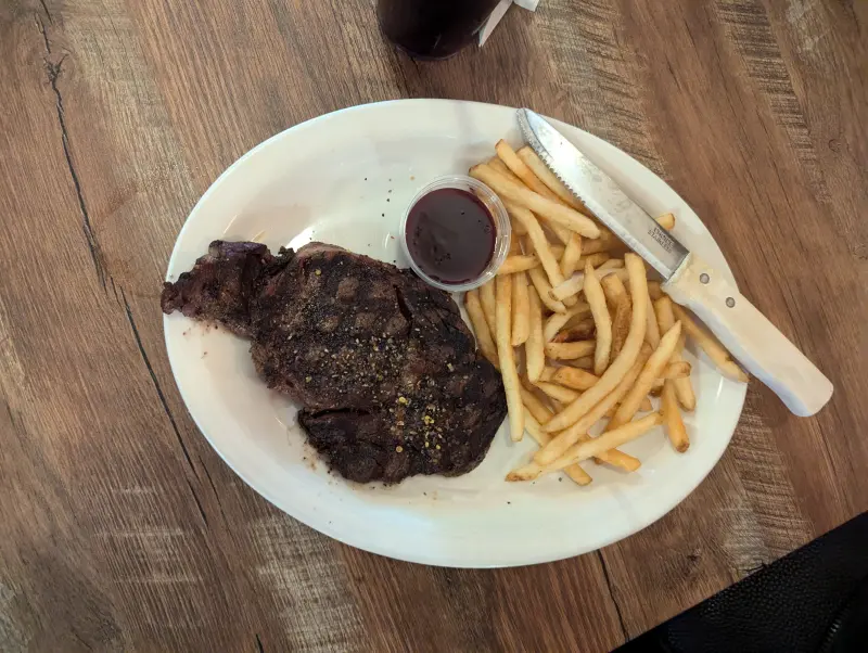Para una experiencia más tranquila (comida sin tanta música o bar), como en nuestro caso, consideren ir temprano en la tarde, antes de que empiece la música en vivo o el karaoke. Si están con presupuesto moderado, el menú es de tipo pub, por lo que los precios son razonables, pero recuerden que en destinos turísticos como Estes Park, los costos pueden ser un poco elevados.